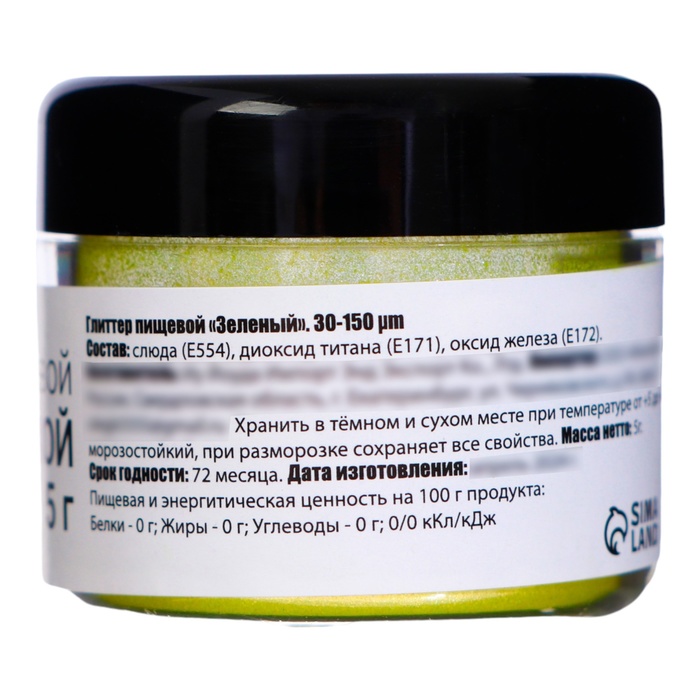 Зеленый кандурин обладает высокой светоотражающей способностью, которая создает эффект блеска и сияния, превращая даже самые простые угощения в настоящие шедевры. Благодаря своему мелкодисперсному размеру фракции от 30 до 150 микрон, он легко распределяется по поверхности, обеспечивая равномерное покрытие и великолепный эстетический эффект.
