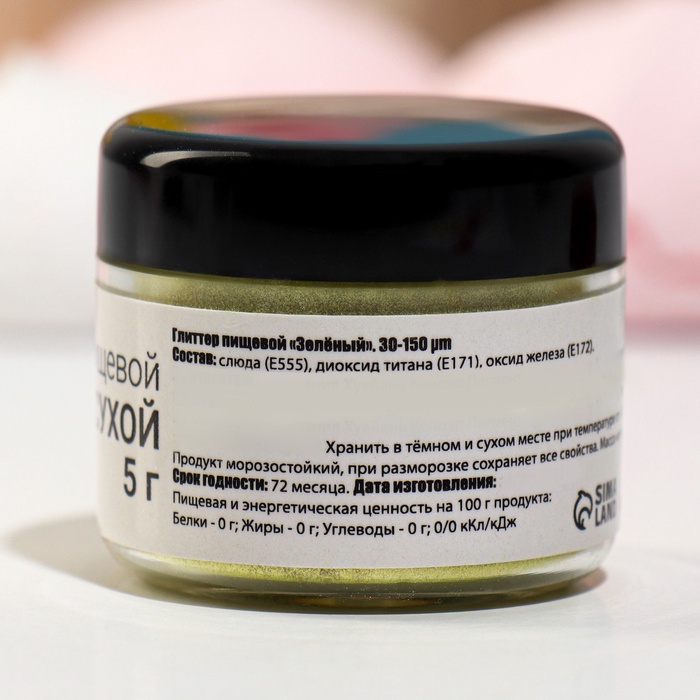 Глиттер кандурин пищевой КондиМир "Зеленый" (фракция 30-150 µm, 5 г) — это идеальное решение для создания яркого и эффектного декора ваших кулинарных произведений. Этот блестящий элемент предназначен для тех, кто хочет добавить изюминку и эстетическую привлекательность к своим десертам, выпечке и кондитерским изделиям.