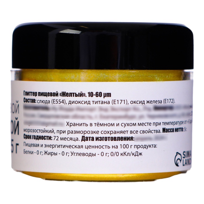 Желтый кандурин обладает высокой светоотражающей способностью, которая создает эффект блеска и сияния, превращая даже самые простые угощения в настоящие шедевры. Благодаря своему мелкодисперсному размеру фракции от 10 до 60 микрон, он легко распределяется по поверхности, обеспечивая равномерное покрытие и великолепный эстетический эффект.