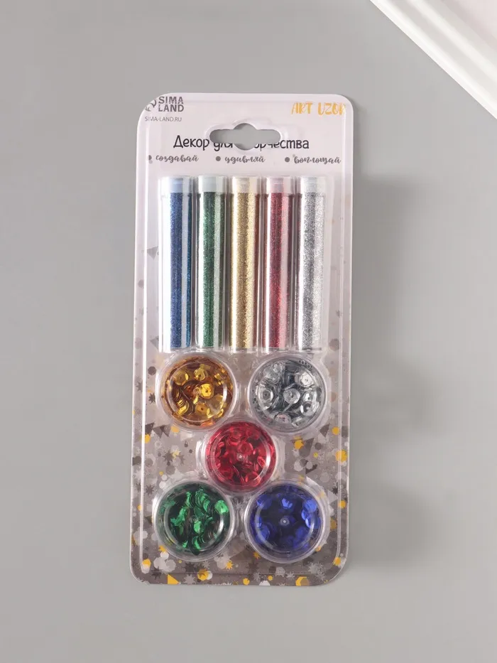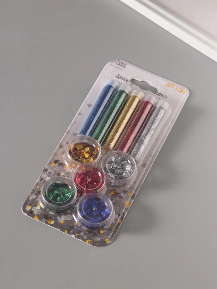 Глиттер «Пудра и пайетки», металлик, набор 5×6 г и 5×5 г, 21.4×9.3 см