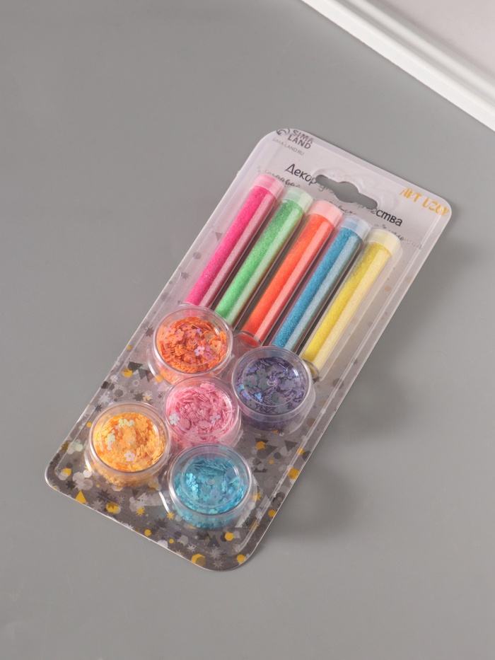 Глиттер «Пудра и цветочки», неон, набор 5×6 г и 5×5 г, 21.4×9.3 см
