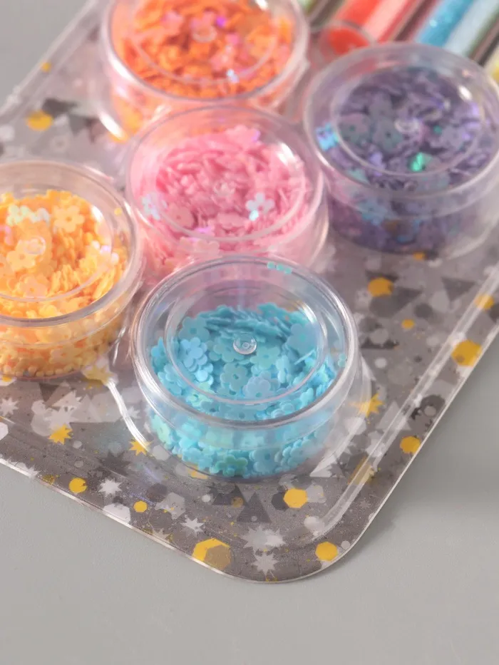 Глиттер «Пудра и цветочки», неон, набор 5×6 г и 5×5 г, 21.4×9.3 см — Характеристики
