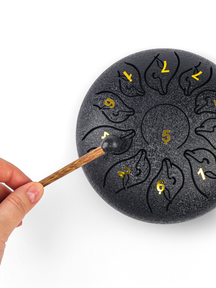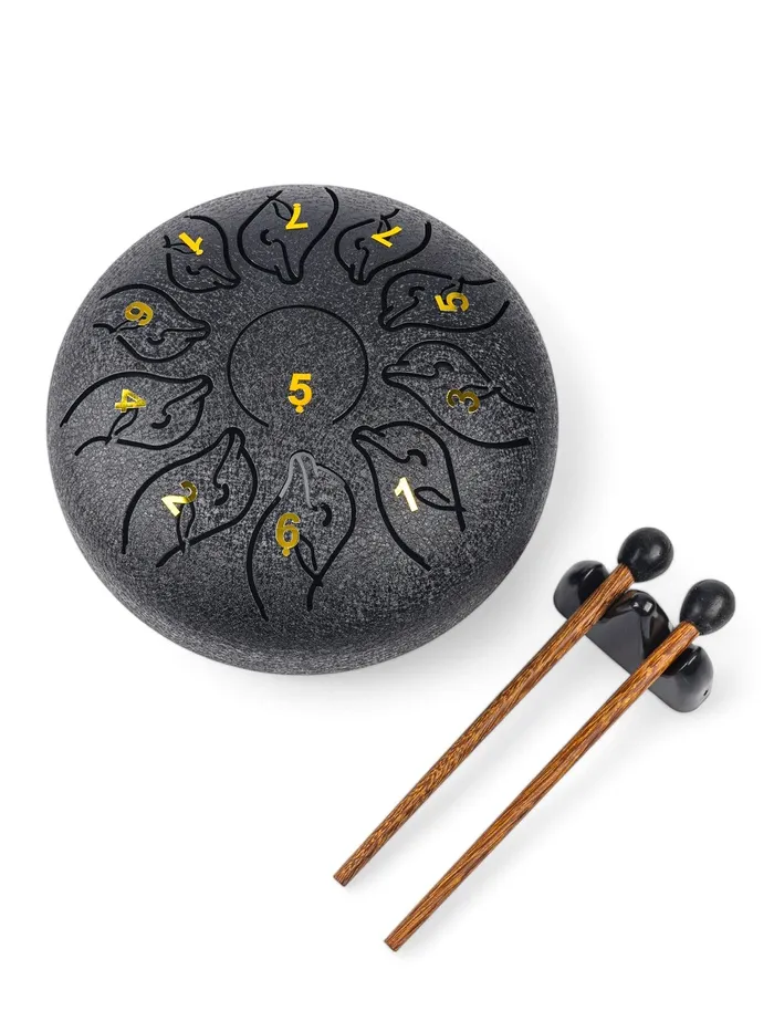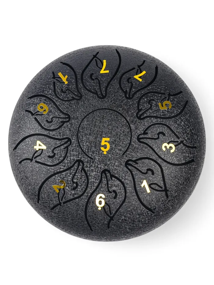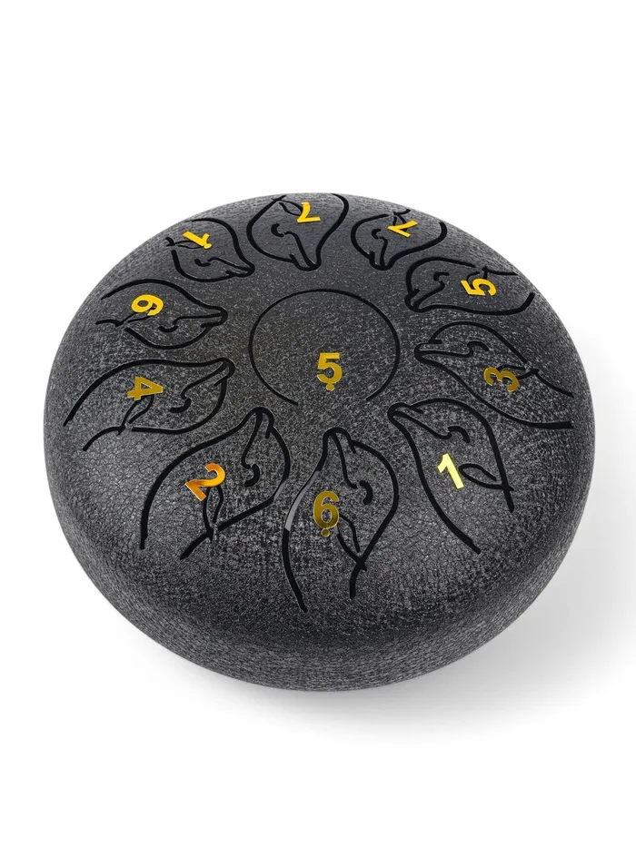 Глюкофон - музыкальный инструмент, дельфин черный, 11 лепестков, 18×18×11 см — Характеристики