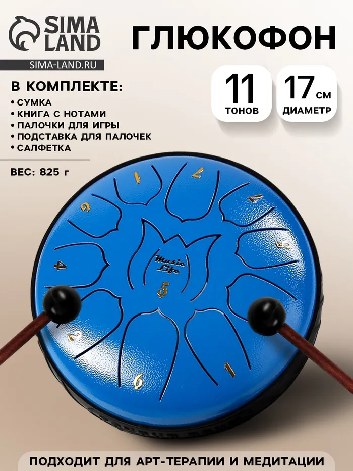 Глюкофон - музыкальный инструмент, синий, 11 лепестков, 17×8 см — Характеристики
