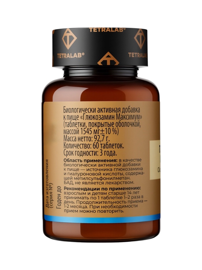 Глюкозамин Максимум TETRALAB — надёжное средство для укрепления суставов и хрящей, восстановления подвижности и снижения воспаления. Подходит для регулярного применения, способствует сохранению гибкости, комфорта и активности движений в любом возрасте.