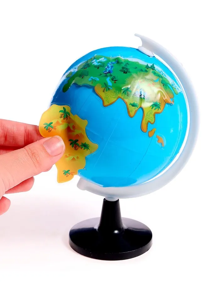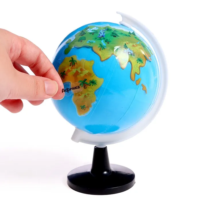 - Украсьте глобус наклейками с континентами, а на континенты поместите животных, в зависимости от их среды обитания.