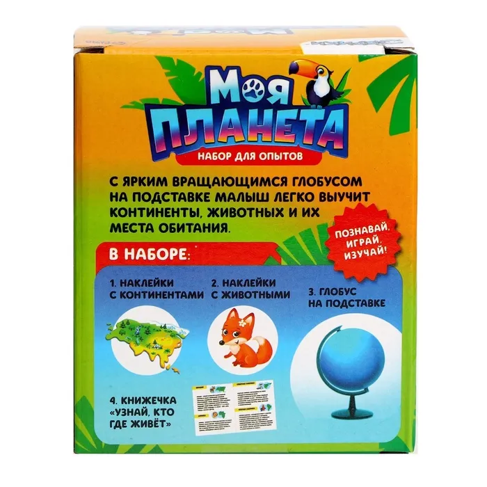 С развивающим набором «Моя планета: Узнай кто где живёт» и ярким вращающимся глобусом на подставке малыш легко выучит континенты, познакомится с разными животными и узнает много интересной информации о них.