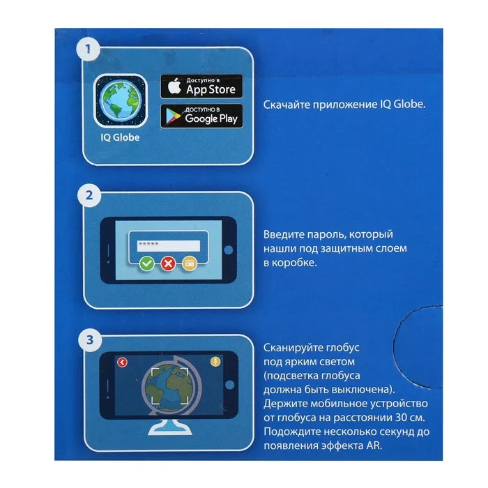 Глобус физико-политический «Глобен», интерактивный, диаметр 250 мм, рельефный, с подсветкой, с очками — Характеристики