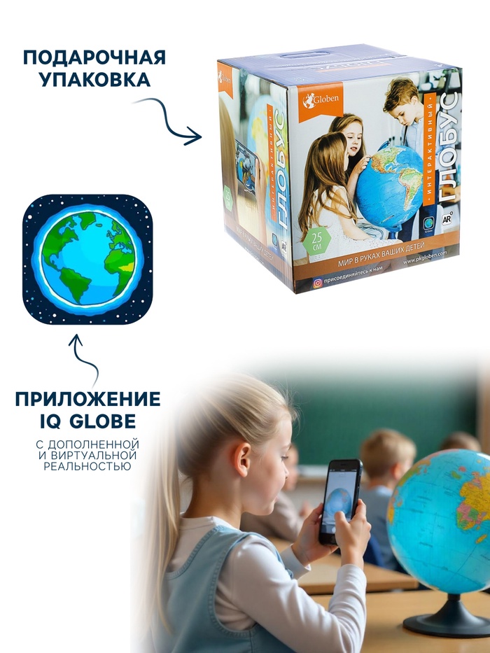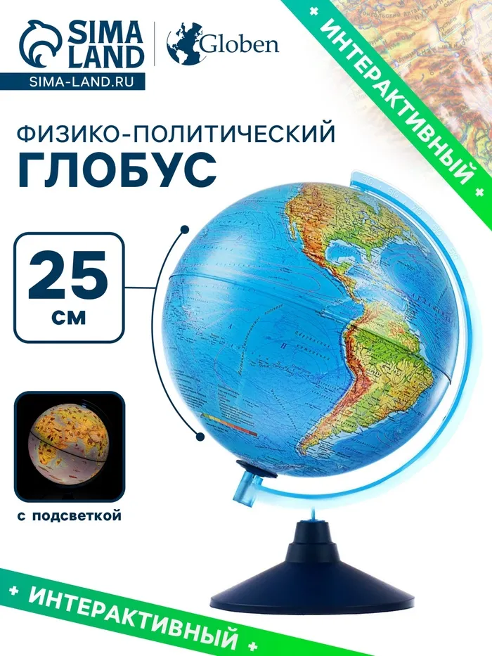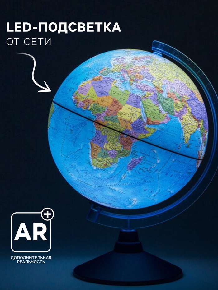 Глобус физико-политический "Глобен", интерактивный, диаметр 250 мм, с подсветкой, с очками — Характеристики