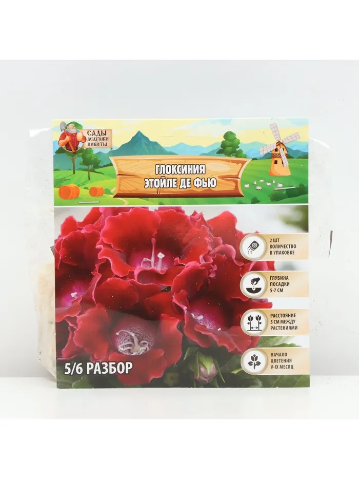 Глоксиния «Этойле де Фью», многолетник, комнатный, луковица в пакете с перфорацией, р-р 5/6, 2 шт. — Характеристики