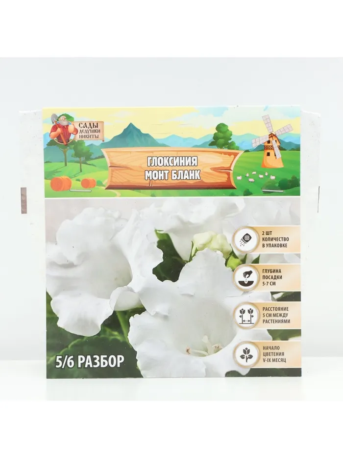 Глоксиния «Монт Бланк», многолетник, комнатный, луковица в пакете с перфорацией, р-р 5/6, 2 шт. — Характеристики