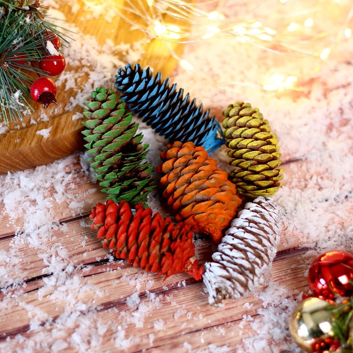 Новогодний декор «Цветные шишки» 6 шт., МИКС
