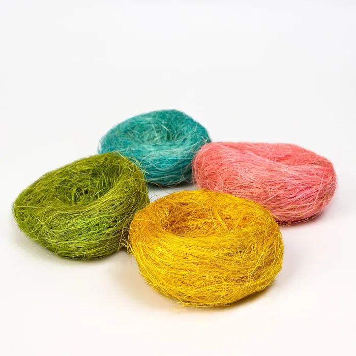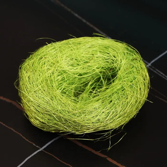 Натуральное волокно, получаемое из листьев растения Agava из рода агавы - сизаль. Данные волокна выделяют из свежих листьев, декортикационные машины мнут и раздавливают листья, в результате отделяется волокно, которое затем промывают, сушат на солнце и обрабатывают щётками. Сизаль - это природное волокно и благодаря натуральному плетению оно выгодно отличается от гнезд из пластика.