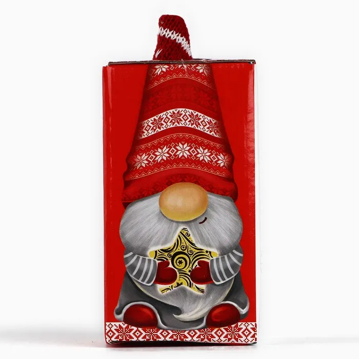 Гном упакован в красивую подарочную коробку с новогодней тематикой, что делает его идеальным подарком для любого возраста.