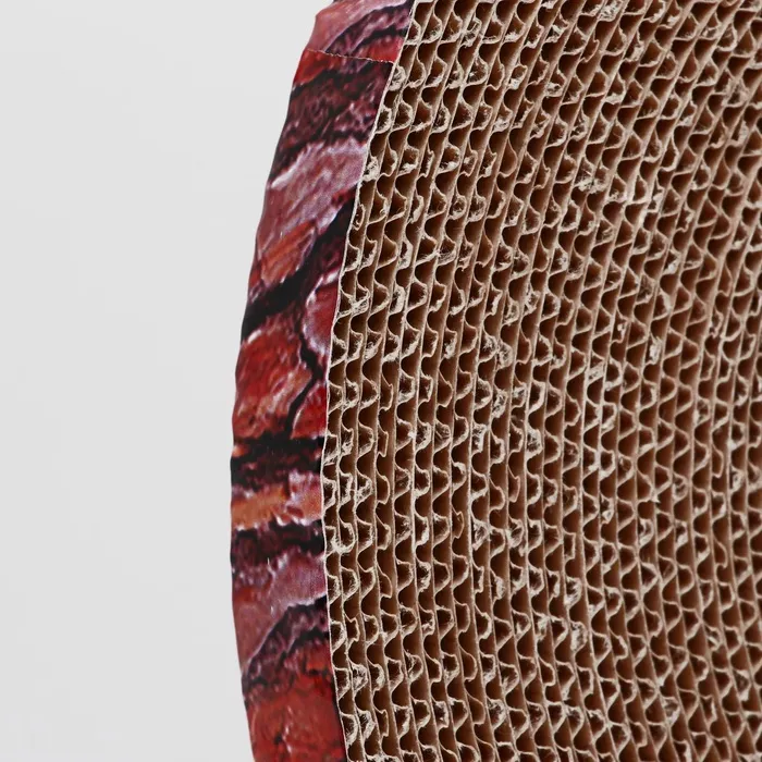 Она выполнена из гофрокартона, который изготовлен из природного материала - древесины и по своим свойствам очень на нее похож, чем и привлекают наших питомцев. Он достаточно плотен, чтобы выдержат острые коготки, и оптимально податлив, чтобы привлекать кошку.