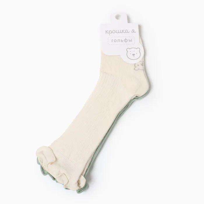 Гольфы детские 2 пары Крошка Я BASIC LINE, 12-14 см, молочный, оливковый — Характеристики