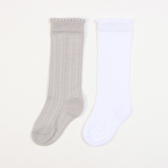 Гольфы ажурные 2 пары Крошка Я 10-12 см, белый/серый