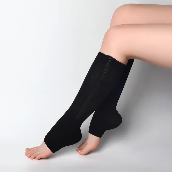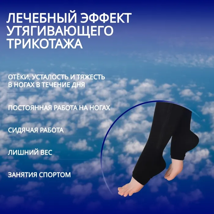 Утягивающие профилактические гольфы используются для предотвращения венозных заболеваний. Изделие стимулирует кровоток. Ткань плотно прилегает к ногам и не сползает при ношении. Чулки не являются предметом медицинского назначения.