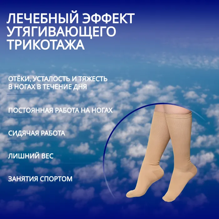 Длинные утягивающие гольфы отлично подойдут беременным женщинам и людям с активным образом жизни. Помогают при борьбе с варикозом, частой отёчностью и усталостью ног и ускоряют процесс заживления травм. Также их можно надевать при перелётах, чтобы ноги не затекали и находились в комфортном состоянии. Гольфы отлично тянутся, поэтому подойдут как женщин, так и для мужчин.