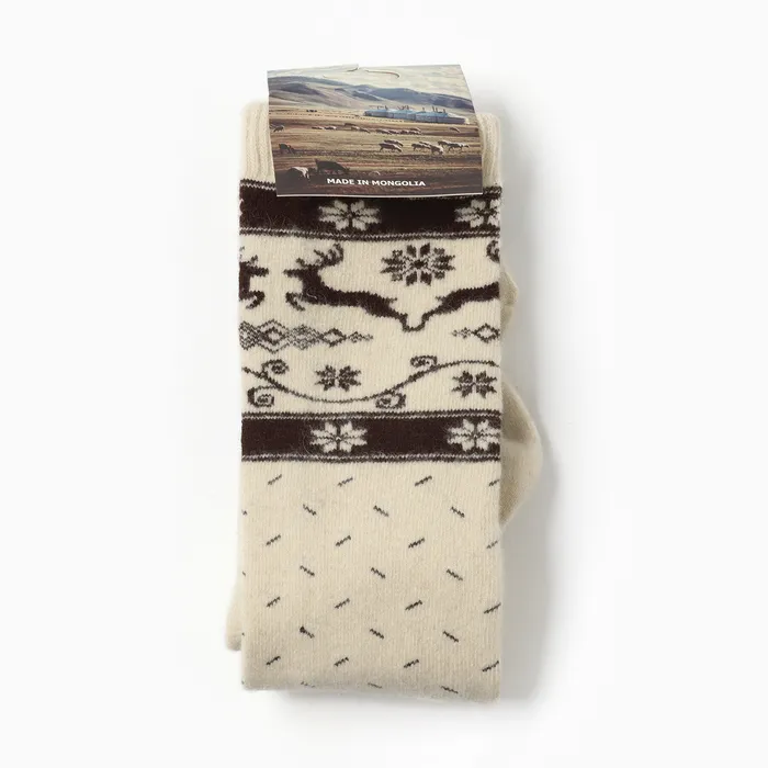 Гольфы женские из монгольской шерсти, цвет белый с рисунком, размер 36-42 — Характеристики