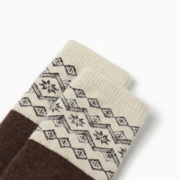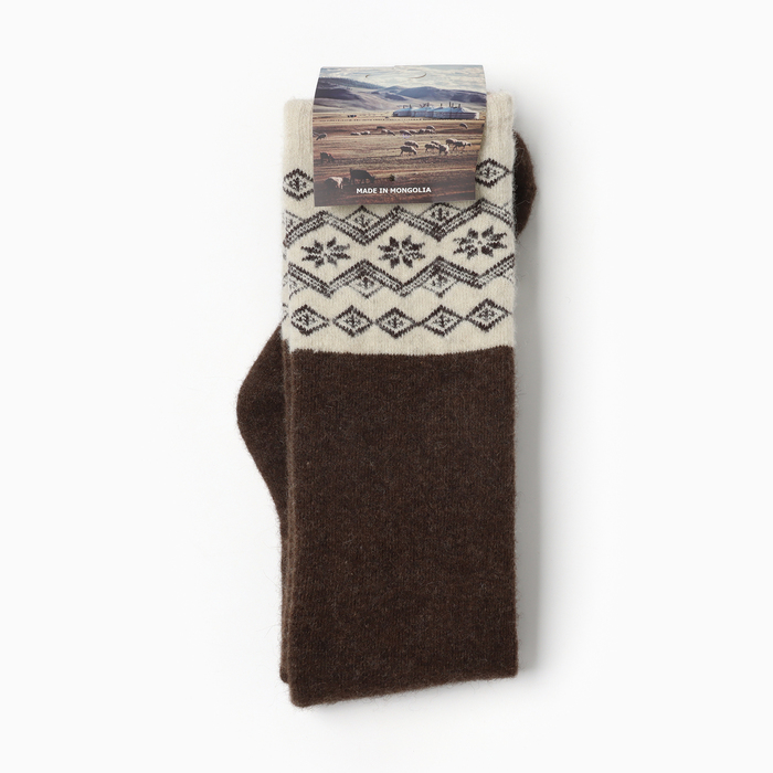 Гольфы женские из монгольской шерсти, цвет шоколадный с узором, размер 36-42