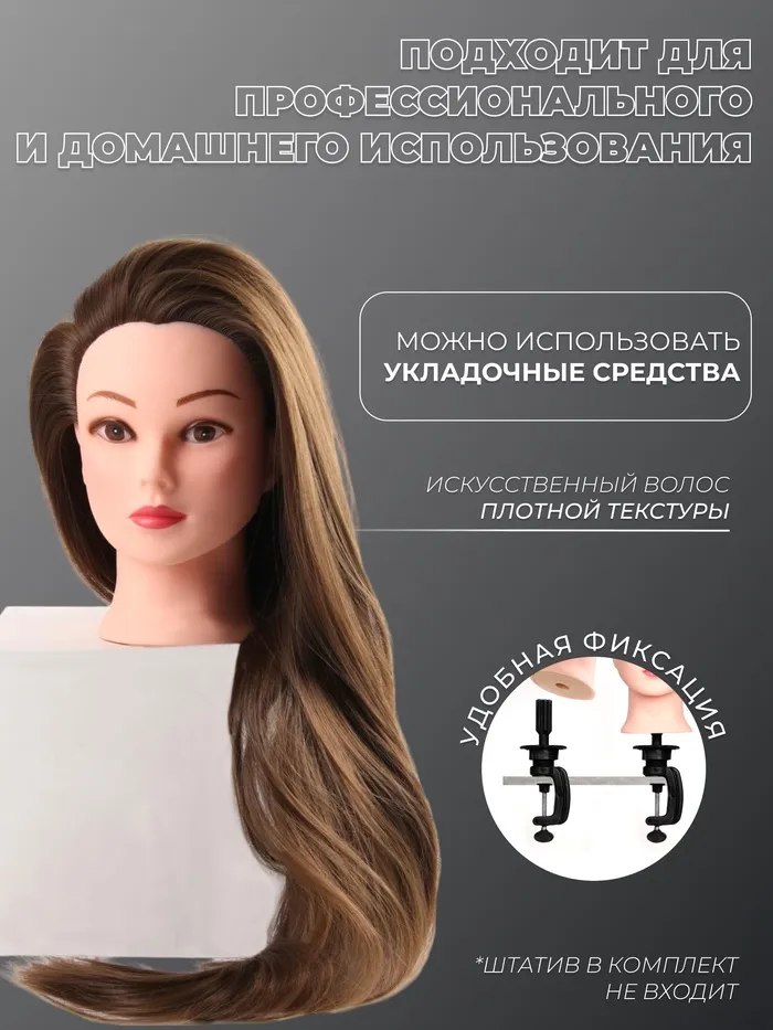 Голова учебная, искусственный волос, 75-80 см, без штатива, тёмно-русая — Характеристики