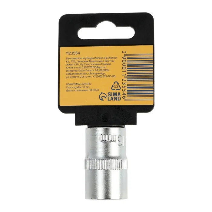 Головка торцевая шестигранная ТУНДРА, под квадрат 1/2", 16 мм, CrV — Характеристики