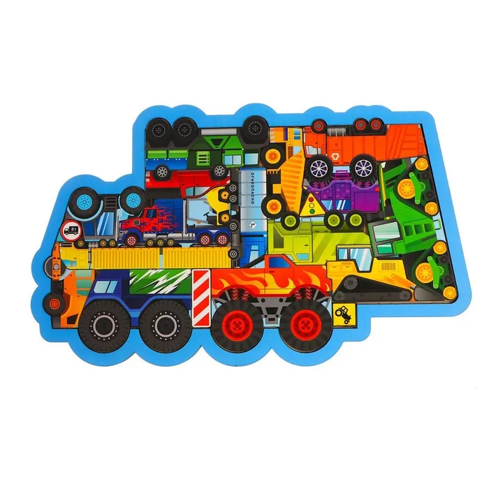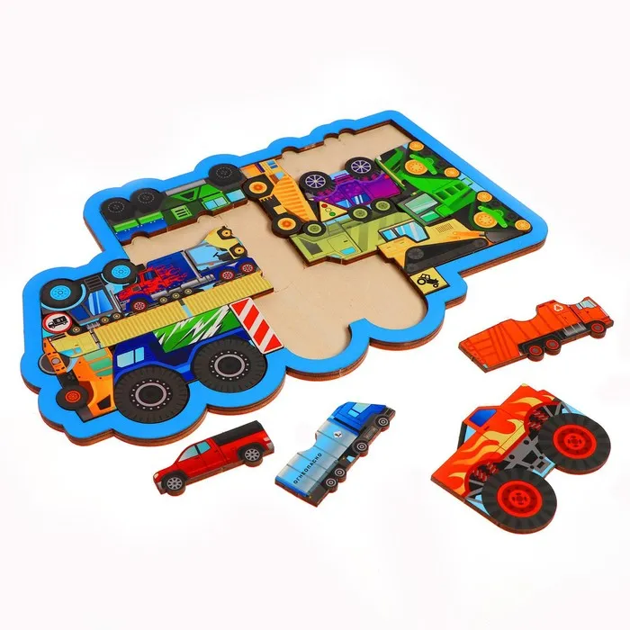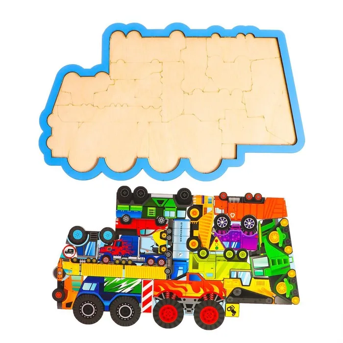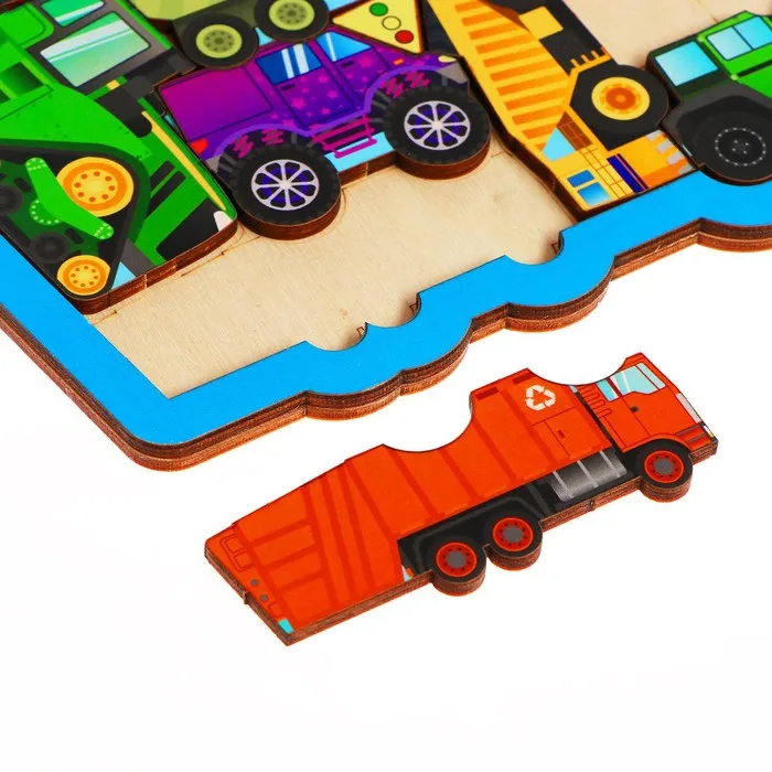 Головоломка из отдельных фигурок - это не только игра в предложенной рамке, но и игра с деталями. Перед сборкой можете спросить у малыша название каждого вида транспорта, где он применяется.