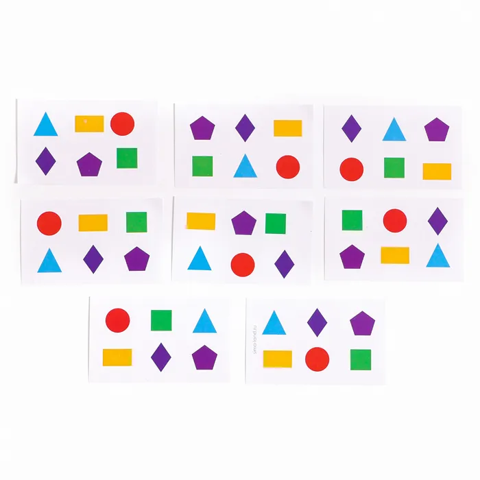 Размер деревянной основы: 20 х 20 смКоличество деталей: 6 штукКоличество карточек со схемой: 8 штукКак играть