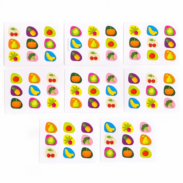 Размер деревянной основы: 20 х 20 смКоличество деталей: 9 штукКоличество карточек со схемой: 8 штукКак играть
