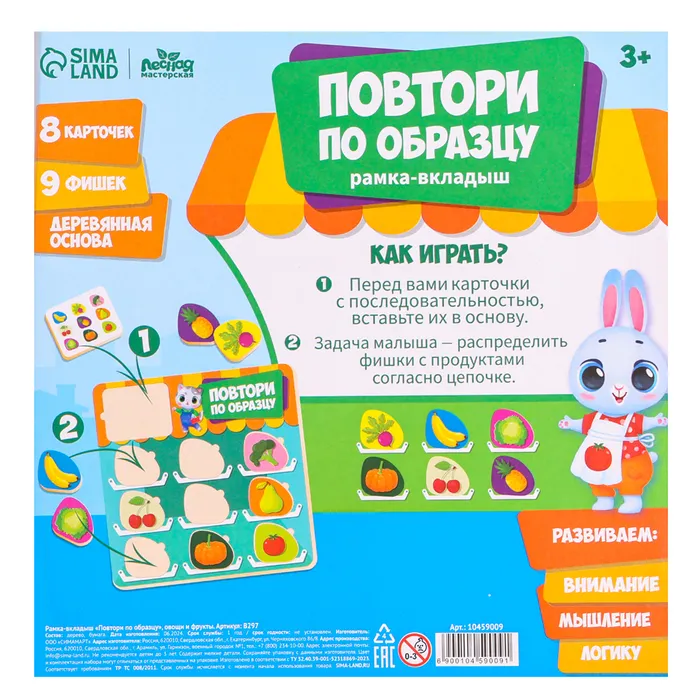Игра «Повтори по образцу» изготовлена из дерева, а значит, она прочная и безопасная.