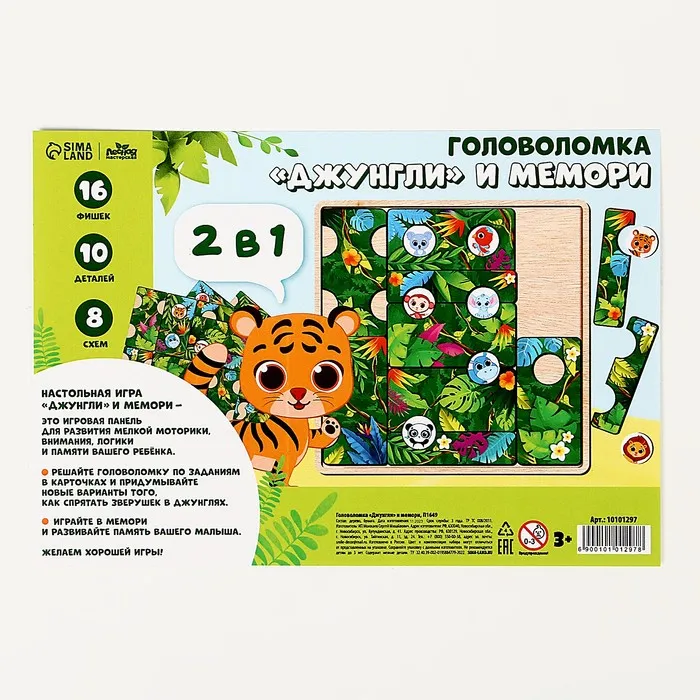Настольная игра «Джунгли и Мемори» — это увлекательный набор для развития памяти, внимания и логики у детей от 3 лет. В комплекте есть все необходимое позволяющие играть в две разные игры: решать головоломки и тренировать память. Игра выполнена из дерева, что делает её безопасной и долговечной.