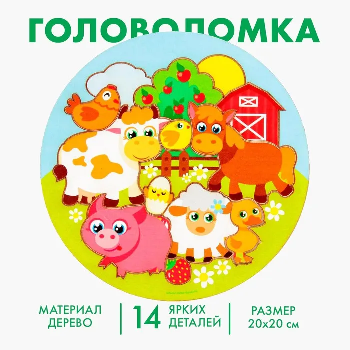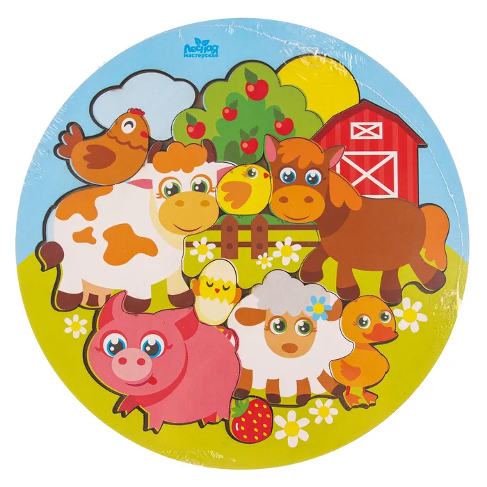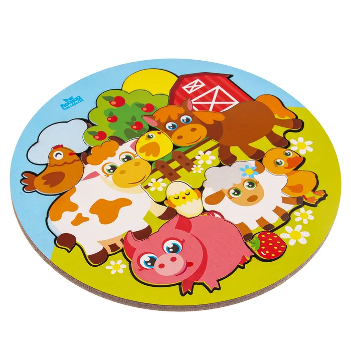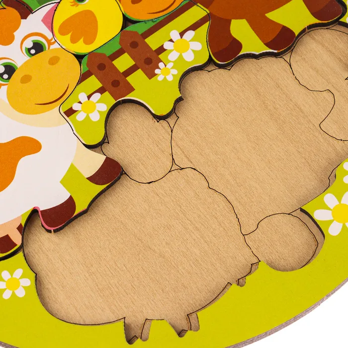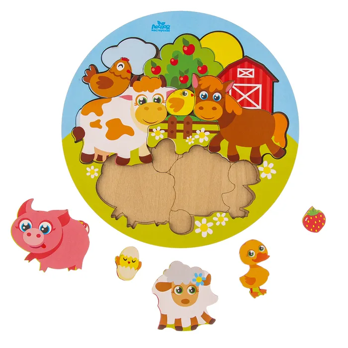 Необычная головоломка с животными сочетает в себе пазл и рамку-вкладыш. Задача крохи — правильно разместить красочные фигурки на деревянном основании, чтобы получилась цельная картинка.