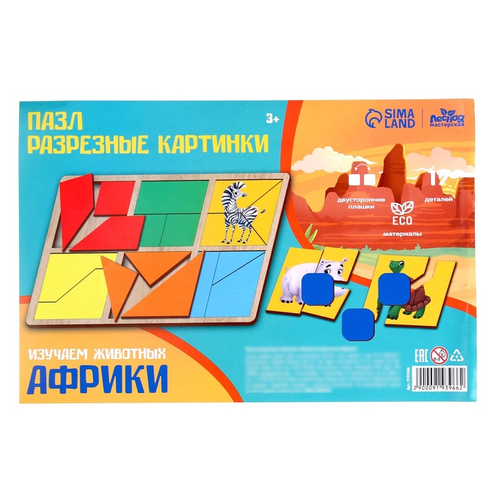 Головоломка геометрическая деревянная «Изучаем животных Африки» — Характеристики