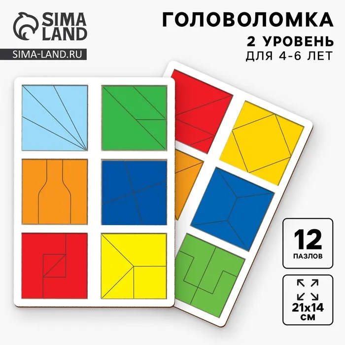 Головоломка геометрическая деревянная «Квадраты», 2 уровень (2 шт.), 12 квадратов — Характеристики