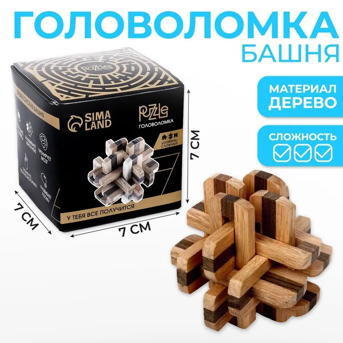 Попробуйте разобрать головоломку на отдельные части, а затем собрать обратно. Кажется, что это просто, но решение требует анализа и последовательности. Головоломка «Вавилонская башня» — отличный способ отвлечься от гаджетов и проверить свои умения. Подарите себе или близким интеллектуальное развлечение!
