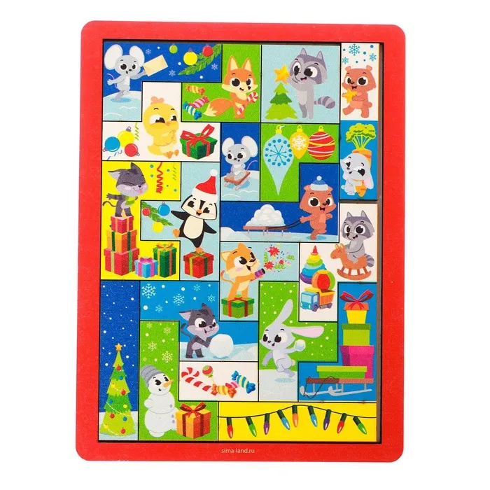 Деревянный тетрис «Новый год! Праздник у зверят», 20 деталей