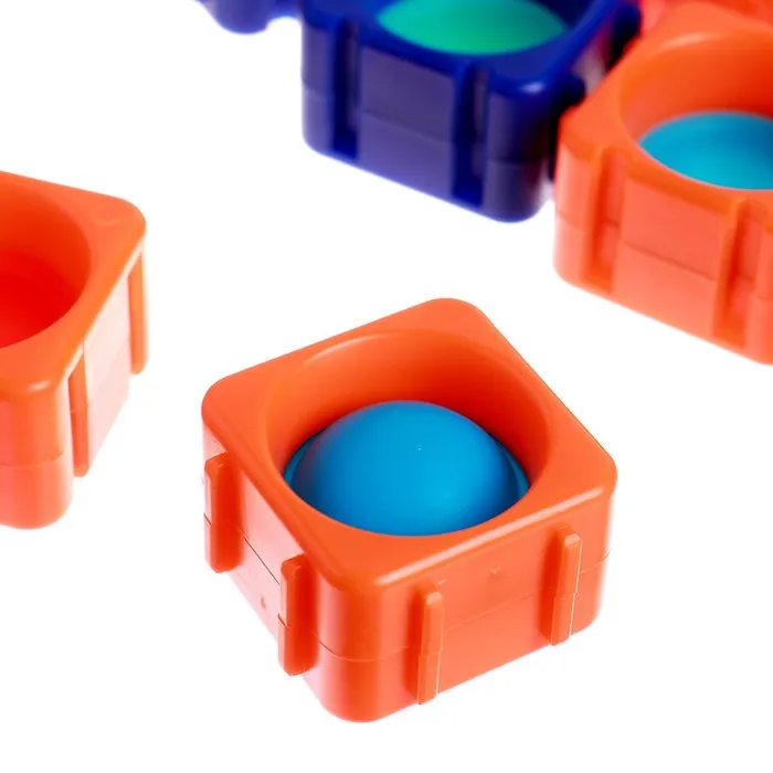 - Если нажимать с одной стороны, то пузырьки на игрушке вдавливаются внутрь с характерным звуком. После этого каждый квадратик можно перевернуть и снова лопать бугорки пальцем.
