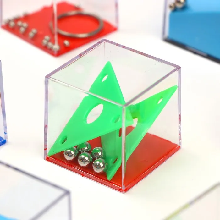 Головоломка «Достигай большего» представляет собой прозрачный куб с маленьким шариком внутри. Задача игрока — провести шарик от старта до финиша, преодолевая извилистые пути и препятствия. Игра способствует развитию мелкой моторики, логического мышления и концентрации внимания. Лабиринт выполнен в ярких цветах, что привлекает внимание и делает процесс игры увлекательным.