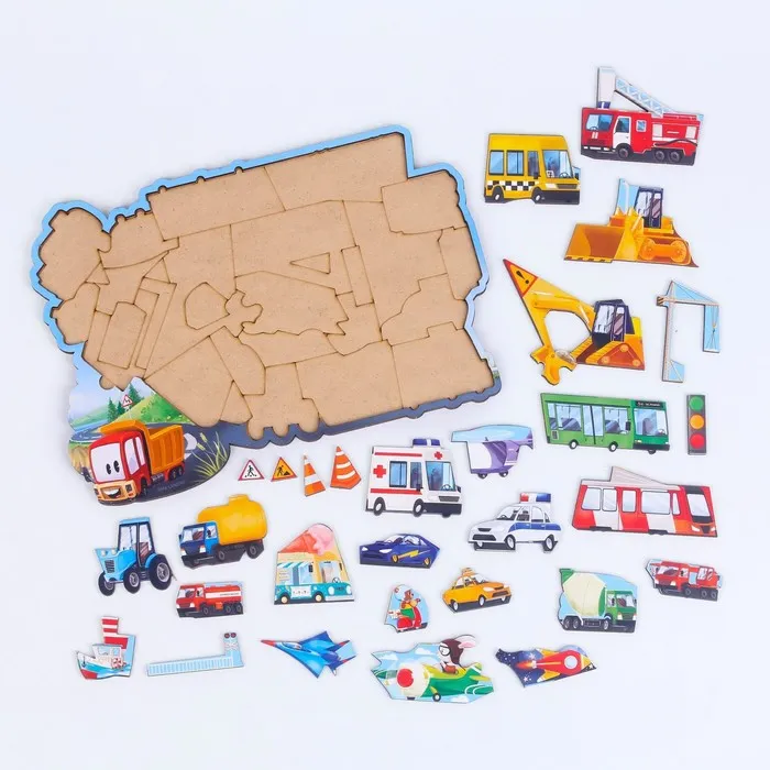 Деревянная головоломка «Машинки» — это увлекательная игра для мальчиков от 3 лет, которая помогает развить логику, мелкую моторику и внимание. В набор входит 29 деталей с изображениями машинок, которые нужно собирать в рамку. Игра выполнена из натурального дерева, что делает её безопасной и долговечной.