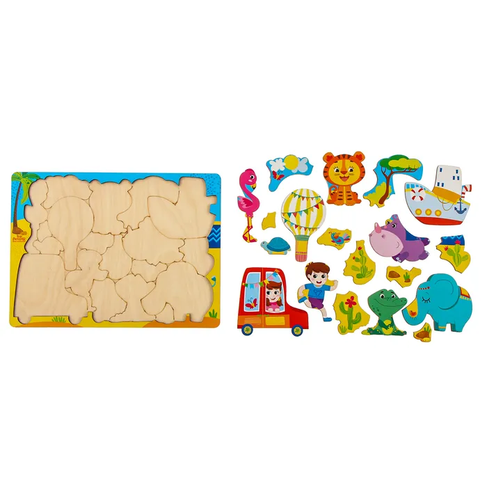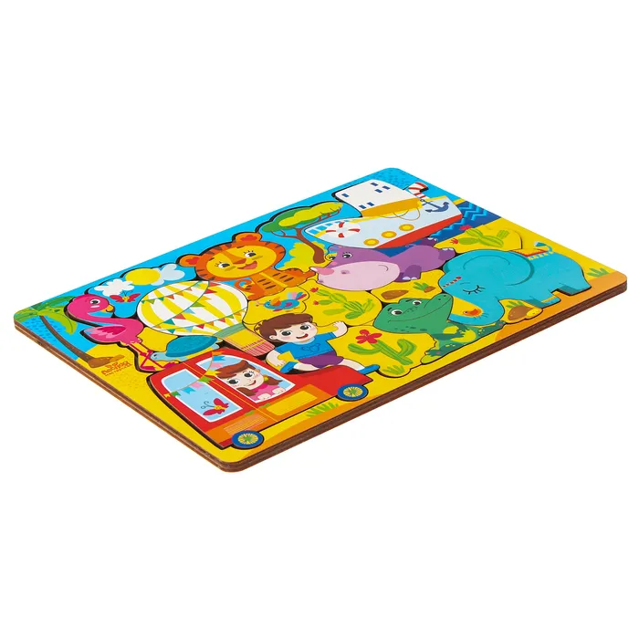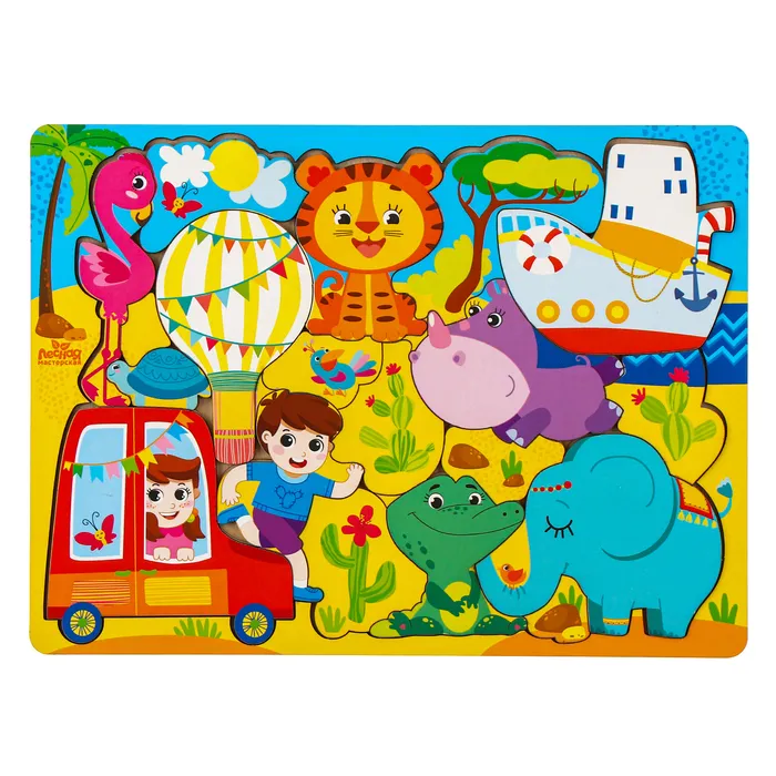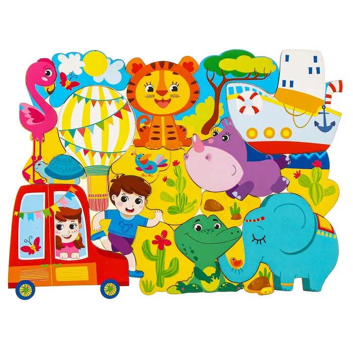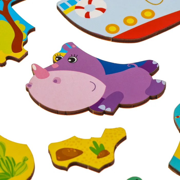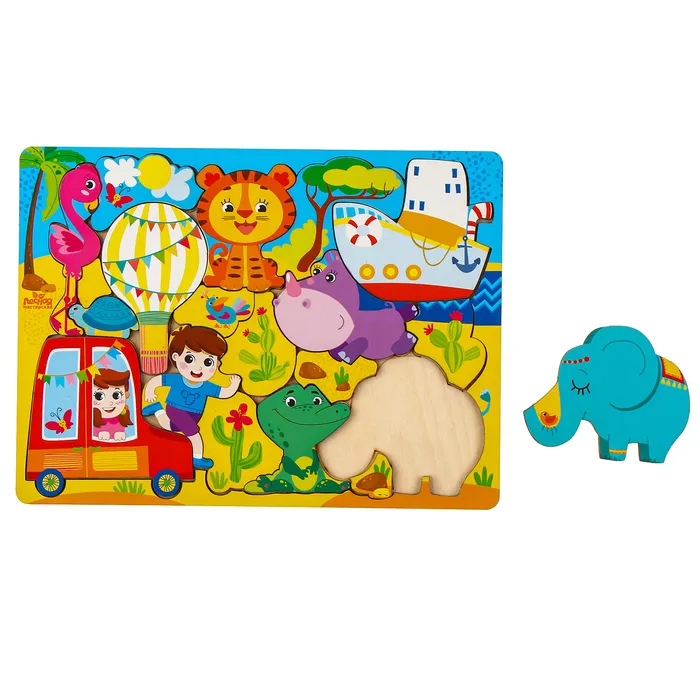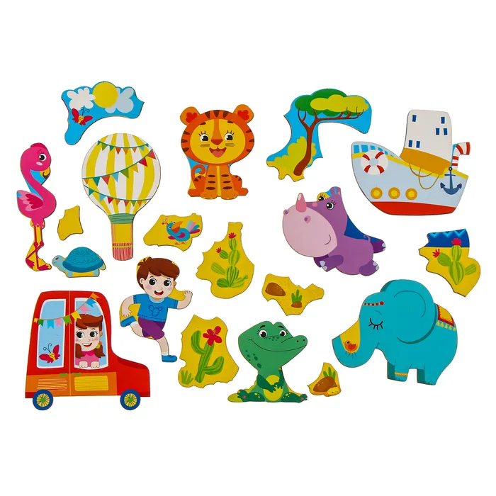 Перед началом игры предложите ребёнку назвать все элементы картинки, их отличительные черты. Затем поместите фигурки на соответствующие места. Чтобы малышу было интереснее, придумайте захватывающую историю (как зовут зверят, куда они все идут и т.д.).