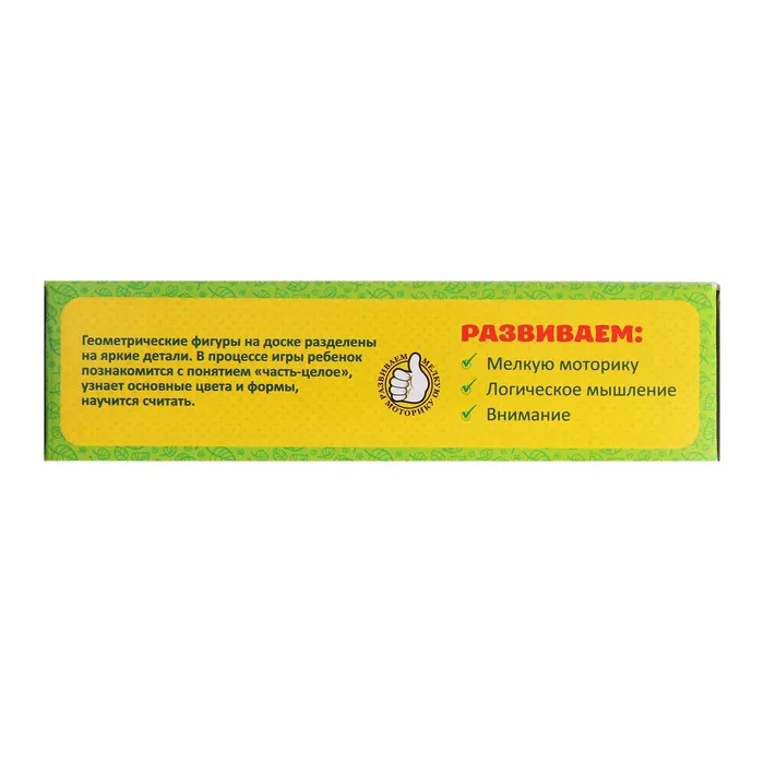 Головоломка — это прекрасный тренажёр для интеллекта ребёнка. Он развивает логику и образное мышление, мелкую моторику, математические и аналитические способности, воображение. Кроха учится из отдельных частей собирать цельные фигуры, находить пары. Юный вундеркинд познакомится с такими понятиями, как «половина», «треть», «часть-целое».