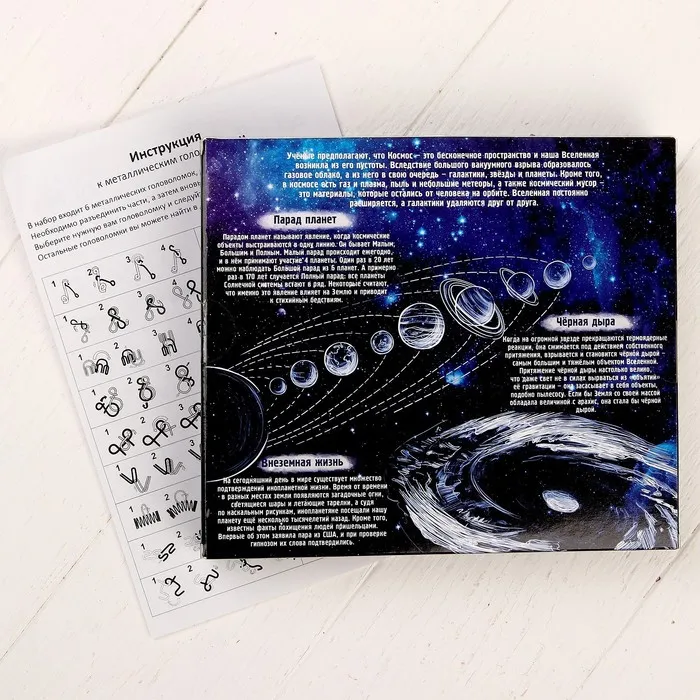 Металлические головоломки «Космос» — это увлекательный набор для любителей логических задач. В комплекте представлены различные головоломки, которые заставят размышлять, анализировать и находить нестандартные решения. Такой формат отлично подходит как для детей, так и для взрослых, ведь тренировка ума полезна в любом возрасте.