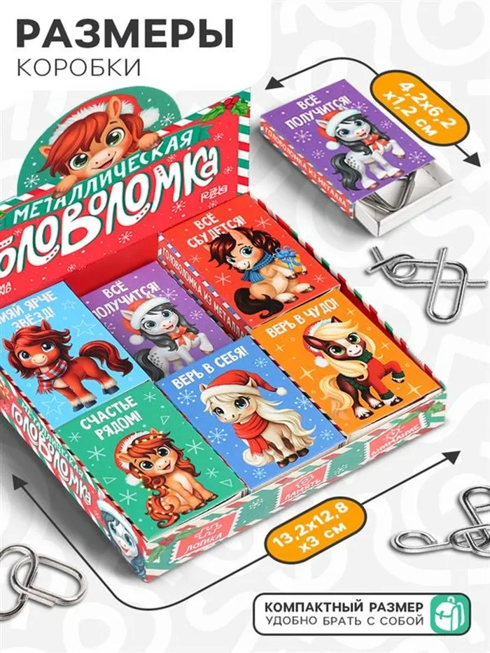 Разгадай праздничную загадку! Металлическая головоломка «Новогодние лошадки» — это изящный сувенир и занимательная игра в одном стильном исполнении. Головоломка станет приятным вызовом для ума и тематическим подарком к Новому 2026 году.