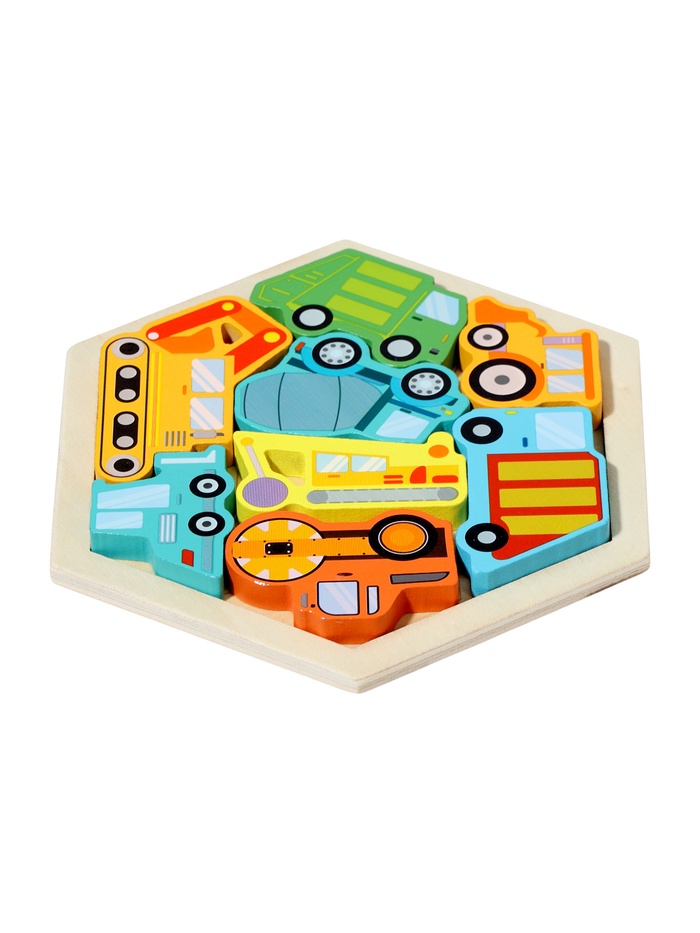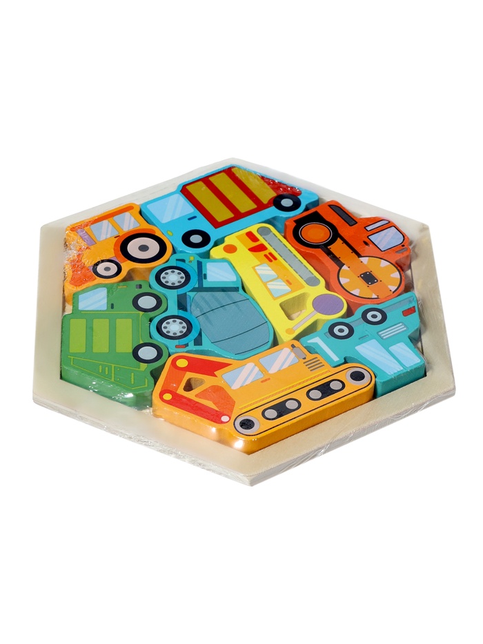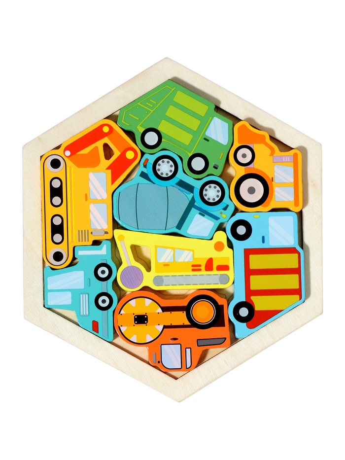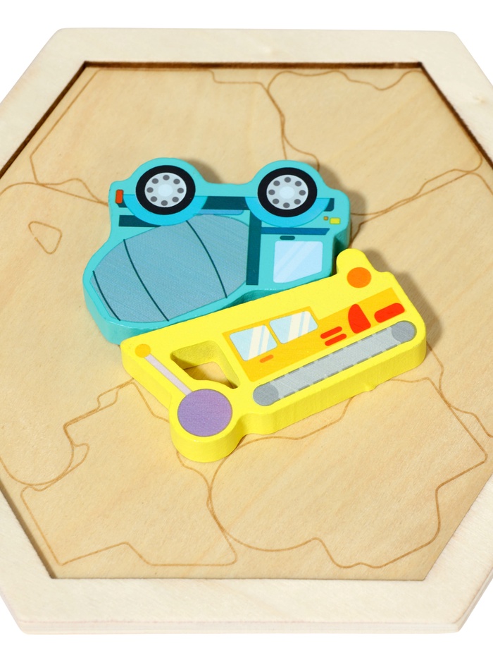 Игра с рамкой-вкладышем «Транспорт» тренирует зрительно-моторную координацию и умение соотносить объект с его силуэтом. Каждое попадание детали в правильное гнездо укрепляет уверенность в своих силах. Сюжет про машины делает процесс не абстрактным, а осмысленным: ребёнок не просто вкладывает фигуру — он «паркует грузовик» или «ставит вертолёт на взлётную площадку». Такая игра поддерживает развитие логики, речи и воображения одновременно.
