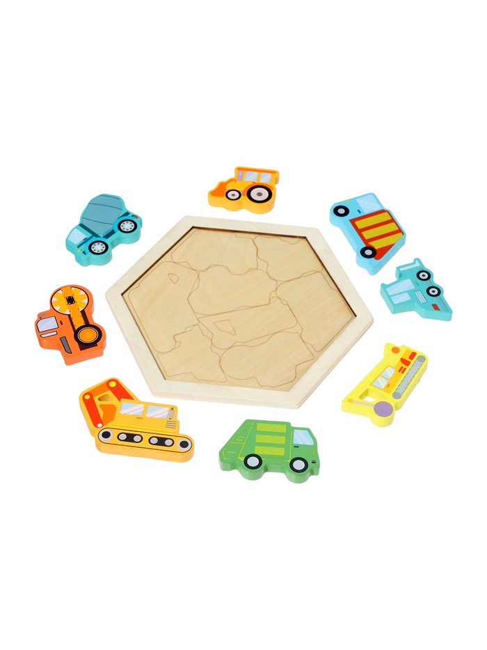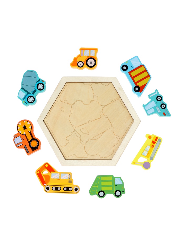 Деревянный сортер «Транспорт» — это рамка-вкладыш для мальчиков от 4 лет, в которой каждая деталь — отдельный вид техники. Всего 8 элементов: грузовик, экскаватор и другие — плотно входят в свои контуры на деревянной подложке. Игра сочетает простоту классического сортера с узнаваемым сюжетом, который вызывает живой отклик у маленьких поклонников машин.