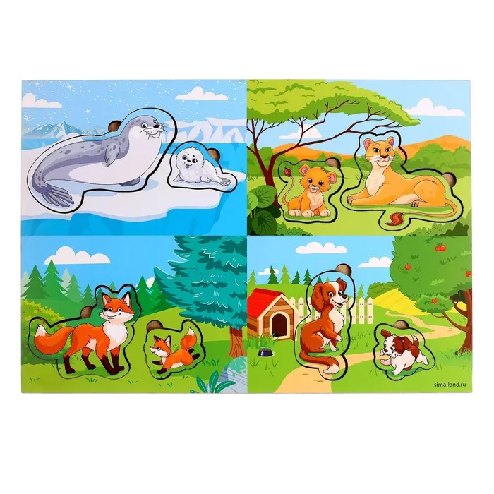 Данная головоломка поможет малышу улучшить сенсорное восприятие, а также изучить животных. Крохе предстоит соотнести элемент вкладки с подходящим отверстием в основе. Хотя эти упражнения кажутся довольно простыми, такие действия очень полезны для развития логического мышления.