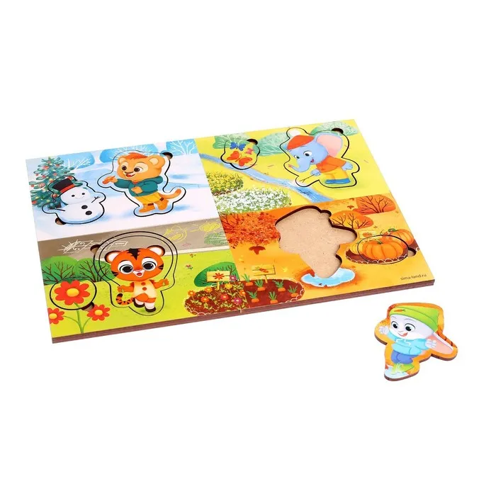 Данная головоломка поможет малышу улучшить сенсорное восприятие, а также изучить животных. Крохе предстоит соотнести элемент вкладки с подходящим отверстием в основе. Хотя эти упражнения кажутся довольно простыми, такие действия очень полезны для развития логического мышления.