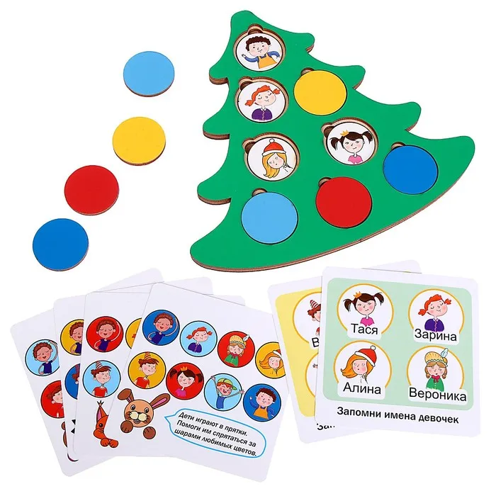 - Игра «Лесные прятки»: помогите ребёнку найти и запомнить местоположение различных зверей на елочке.