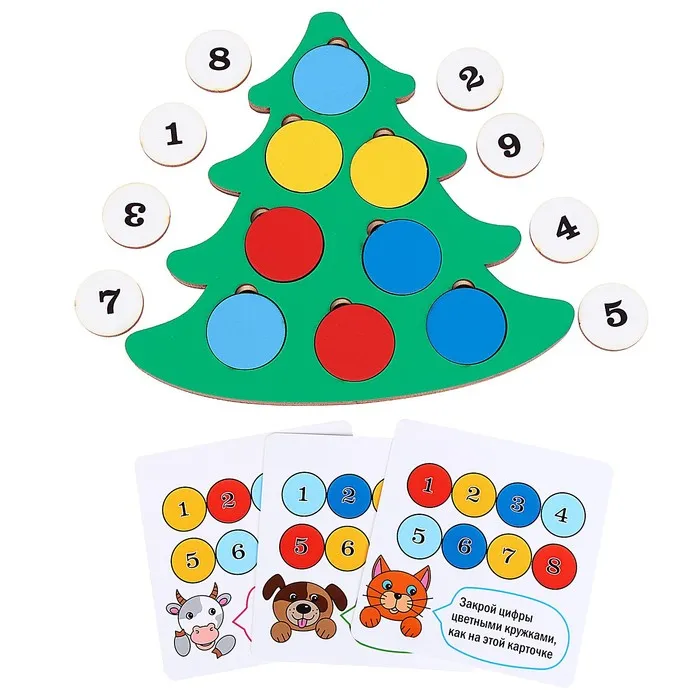 - Игры с карточками: предложите выполнить задания на карточках, используя новогодние шарики для закрытия.